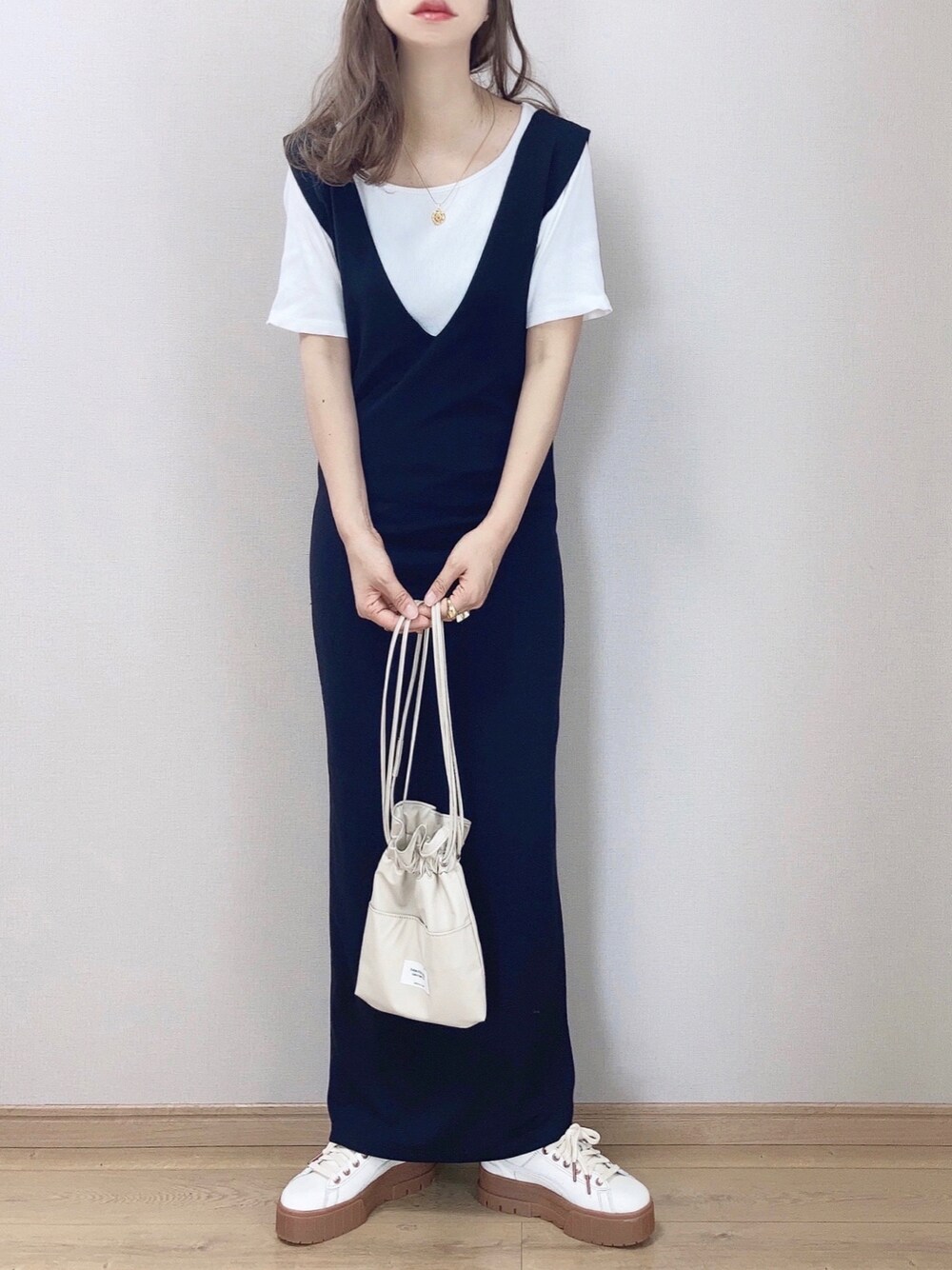 ぴょんのTシャツ/カットソー「ワイドネックリブカットソー(半袖)」を使ったコーディネート