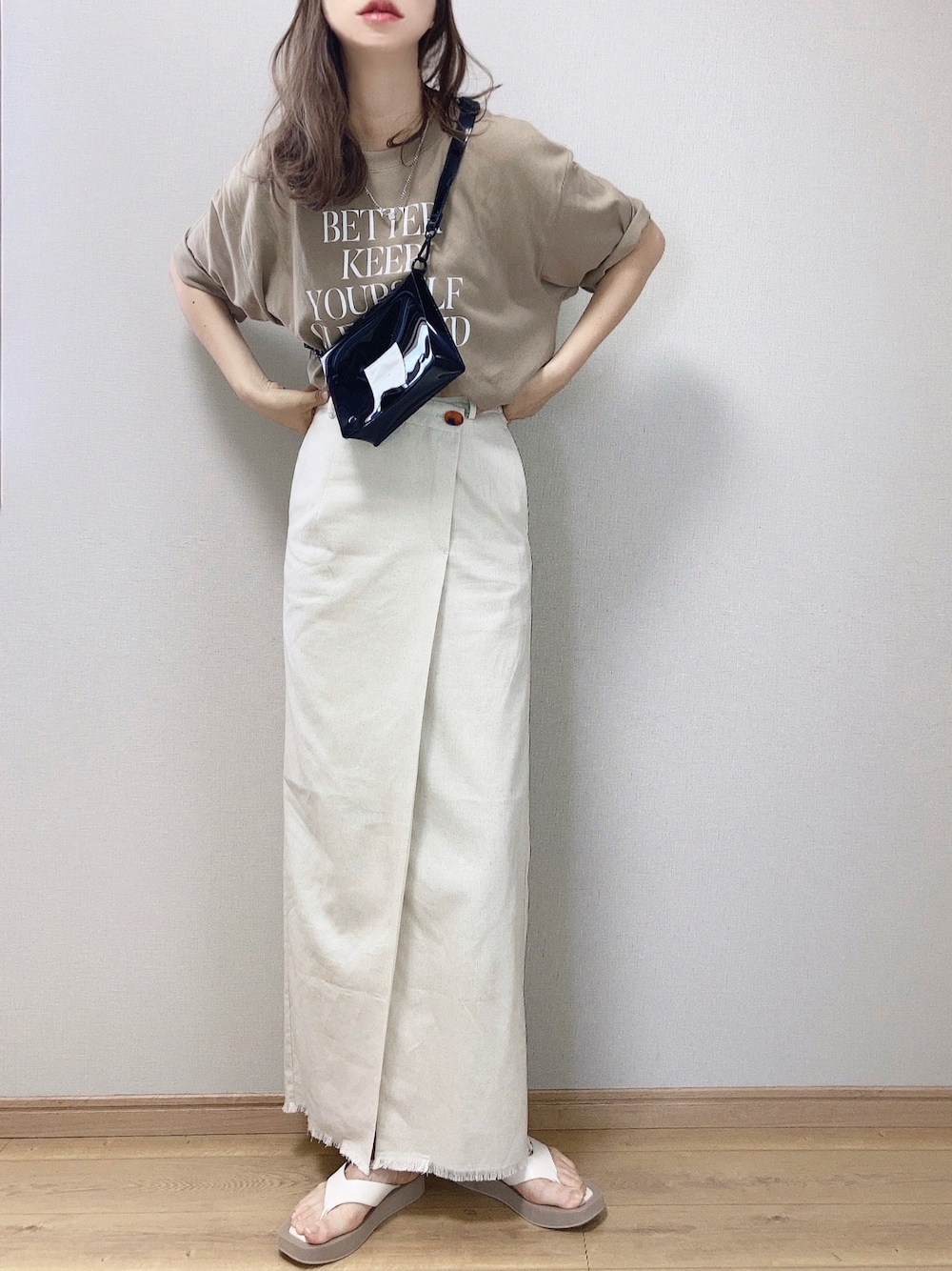 and Meの コットン半袖オーバーサイズロゴプリントTシャツ を着用してます! サラッとした心地良い肌触りが暑い夏でも着やすそう♪ コットン100%仕様です! ドロップショルダーと幅広のお袖が二の腕をがっつりとカバーしてくれるのが嬉しい😆 サイドにスリットが入っているので、OUTで着ても抜け感たっぷりなリラックスコーデが楽しめます✨ お色はカフェオレの様なベージュです☕️🥛 見ていただきありがとうございます🙏 Instagram*pyon9494