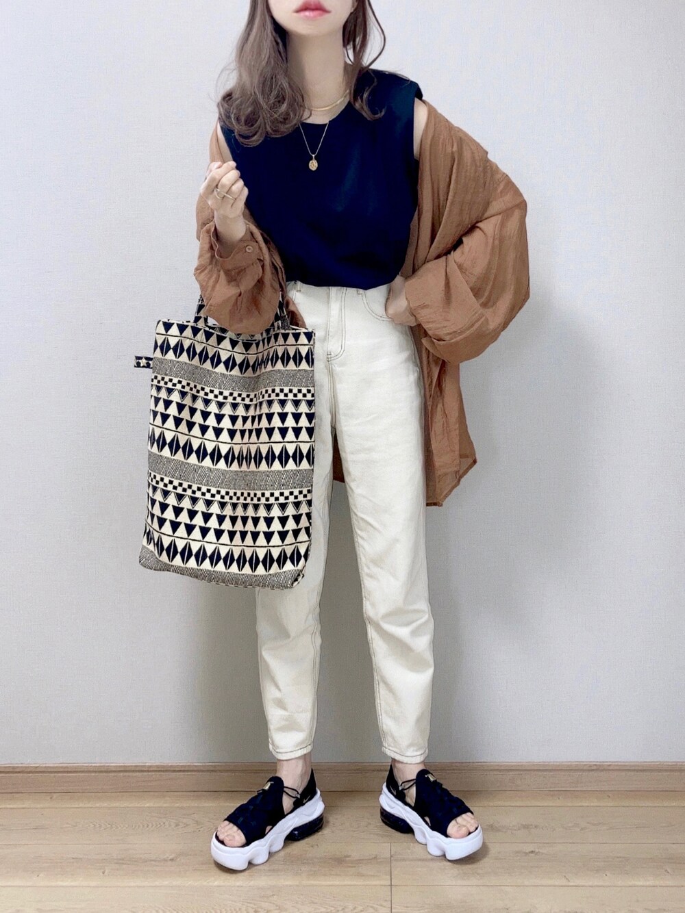 私の中の定番コーデ♪ select MOCAのシアーシャツはお気に入りで3色持ってます♪ 日替わりで着回しするくらいお気に入りアイテム☺️ 見ていただきありがとうございます🙏 Instagram*pyon9494