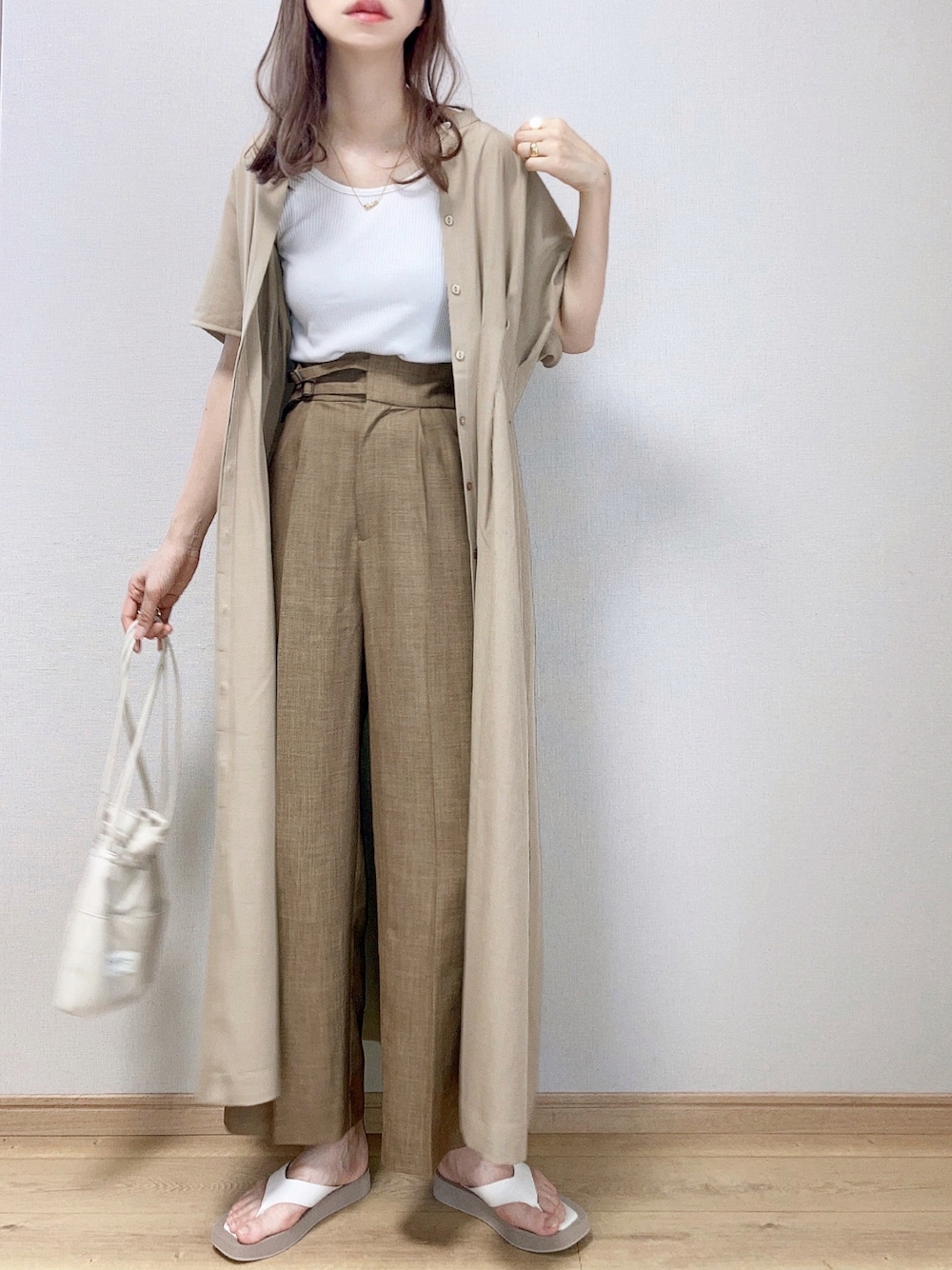 ぴょんのワンピース「リネンライクウエストタックワンピース」を使ったコーディネート