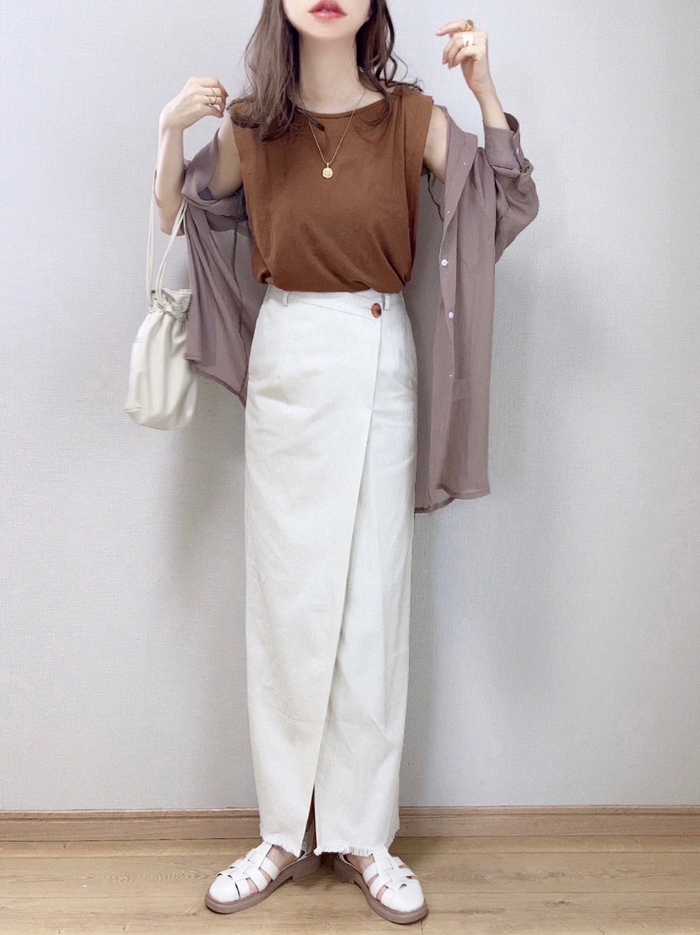 ぴょんのスカート「【WEB限定サイズあり】【大人ナチュ】大人のアシメスリットスカート」を使ったコーディネート