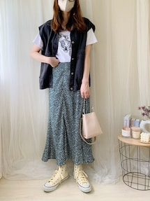 ぴょんのタンクトップ「レトロに魅せられて。ハニカム柄ジャガードタンクトップ」を使ったコーディネート