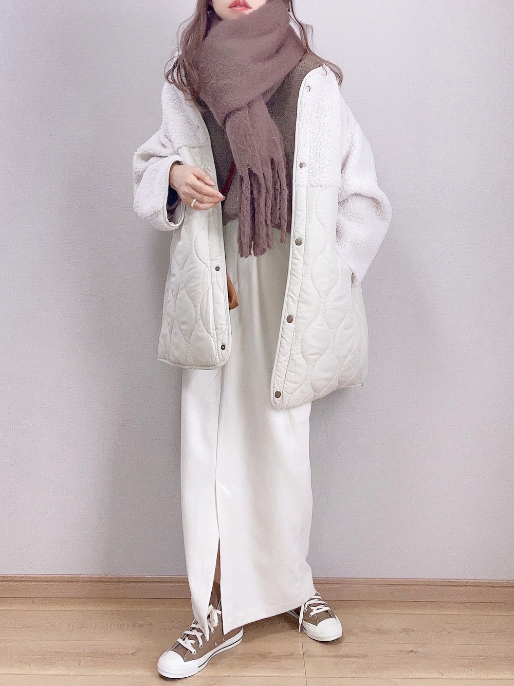 ぴょんのブルゾン「キルティング×ボア切替M-65ショートコート」を使ったコーディネート