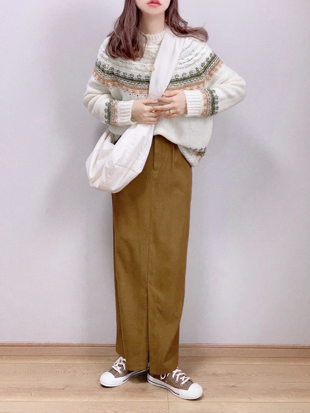 ぴょんのニット/セーター「ノルディックミックスニット」を使ったコーディネート