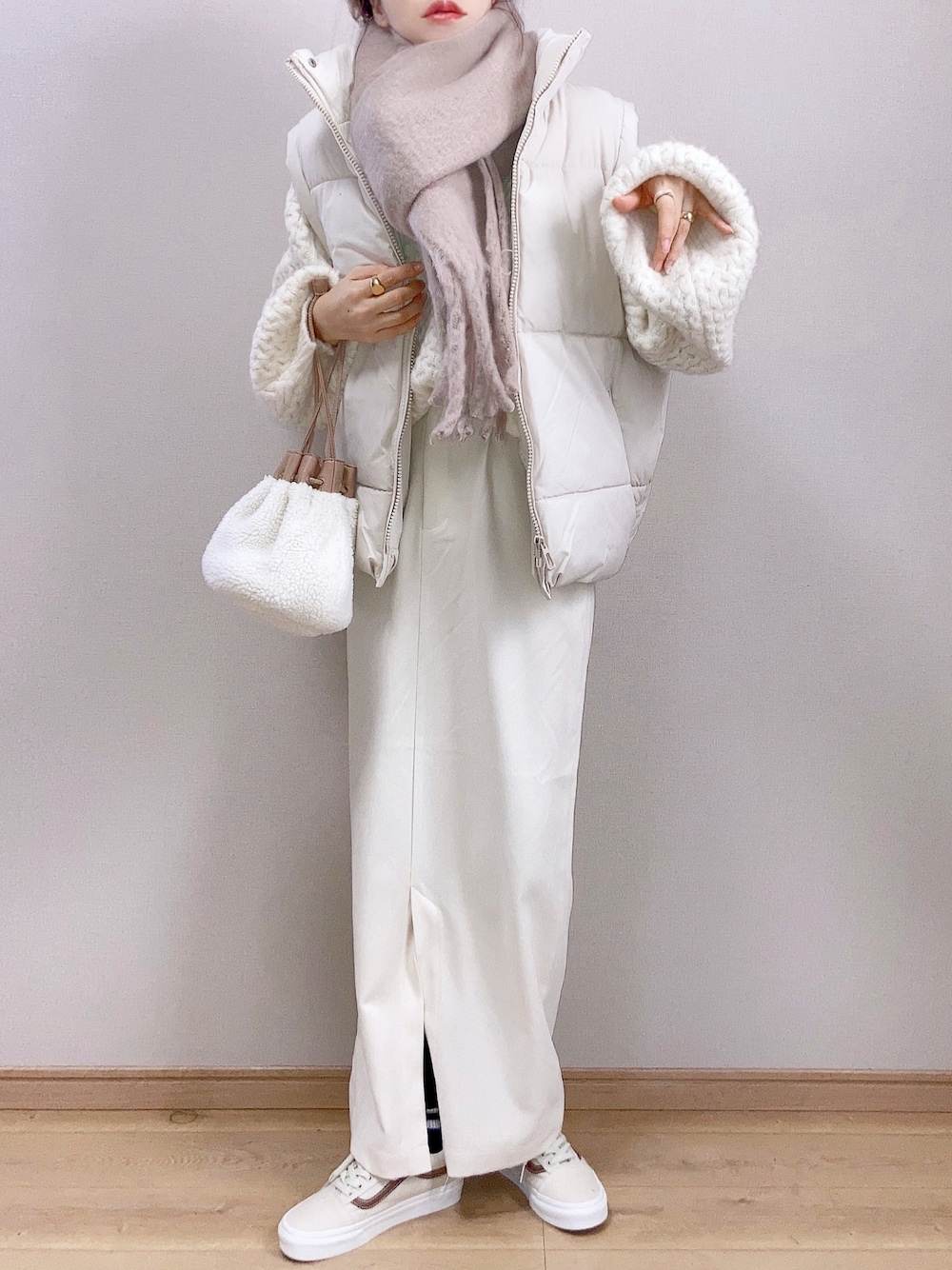 ぴょんのダウンベスト「ファイバーダウンオーバーベスト」を使ったコーディネート