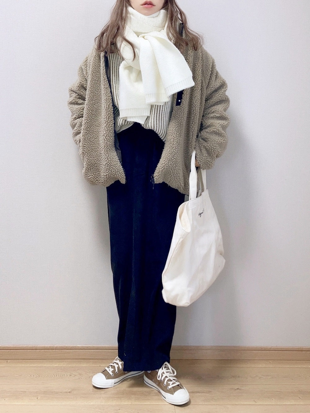 ぴょんのブルゾン「防風加工 リバーシブルボアフリースブルゾンジャケット」を使ったコーディネート