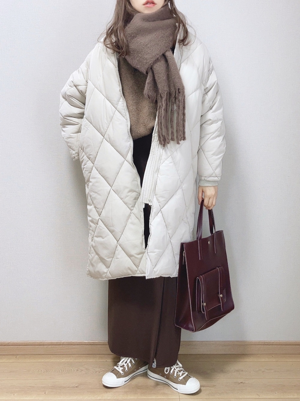 ぴょんのダウンジャケット/コート「ダイヤキルティングロングジャケット」を使ったコーディネート