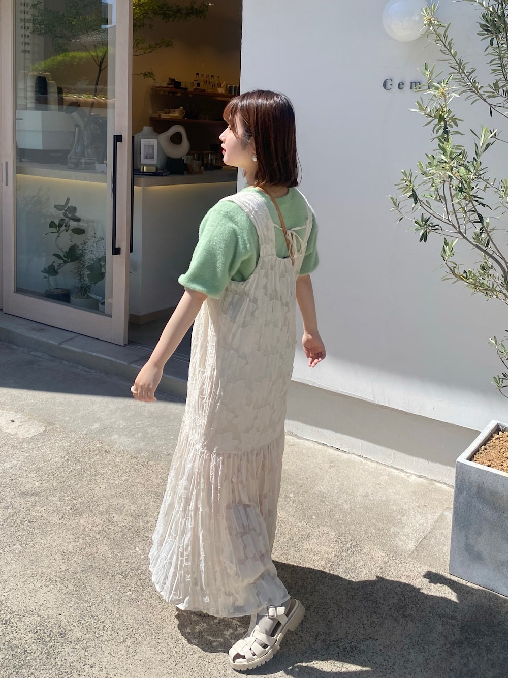 momo🐇のワンピース「【低身長向けサイズあり】シアージャガードレースノースリワンピース」を使ったコーディネート