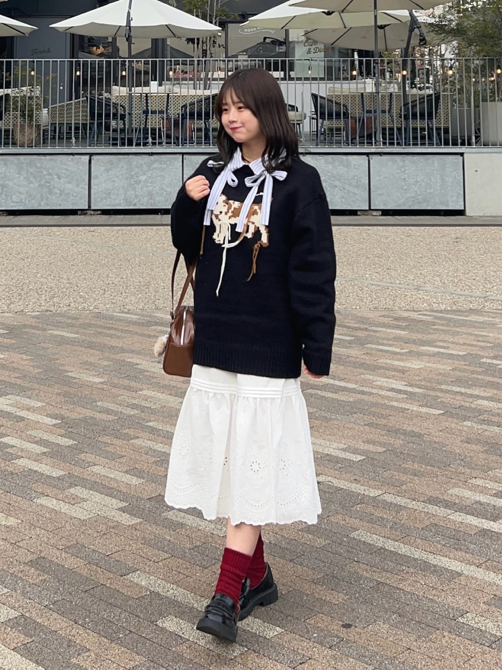わんちゃんニットが可愛すぎる🐕💭 差し色の靴下はGU!あったかい〜〜 🏷️Instagram:@pyon_chan___
