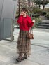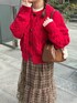レッド×ブラウンでバレンタインコーデ🍫 ダッフルコートみたいなボタンの赤色ニットが可愛すぎる♡ 🏷️Instagram:@pyon_chan___
