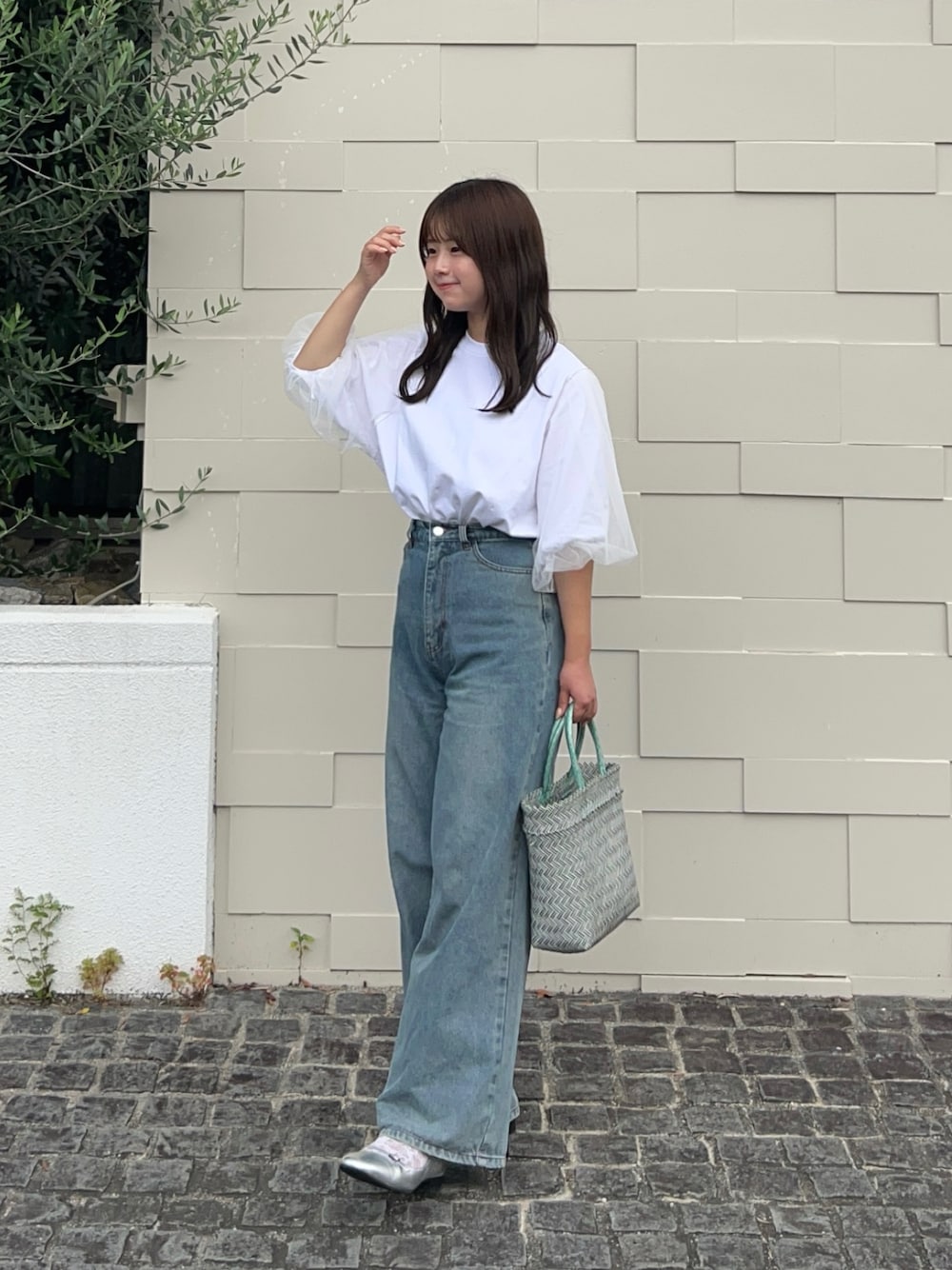 白T×デニムのシンプルコーデ💭 チュールたっぷりのお袖で可愛さをプラス🫶🏻 🏷️Instagram:@pyon_chan___