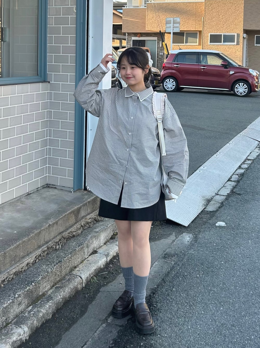 レイヤード風なデザインが可愛いチェックシャツ🫶🏻 オーバーサイズなシルエットもお気に入り🙂↕️💭 1枚でも、ニットやスウェットから襟を出しても◎ 🏷️Instagram:@pyon_chan___