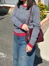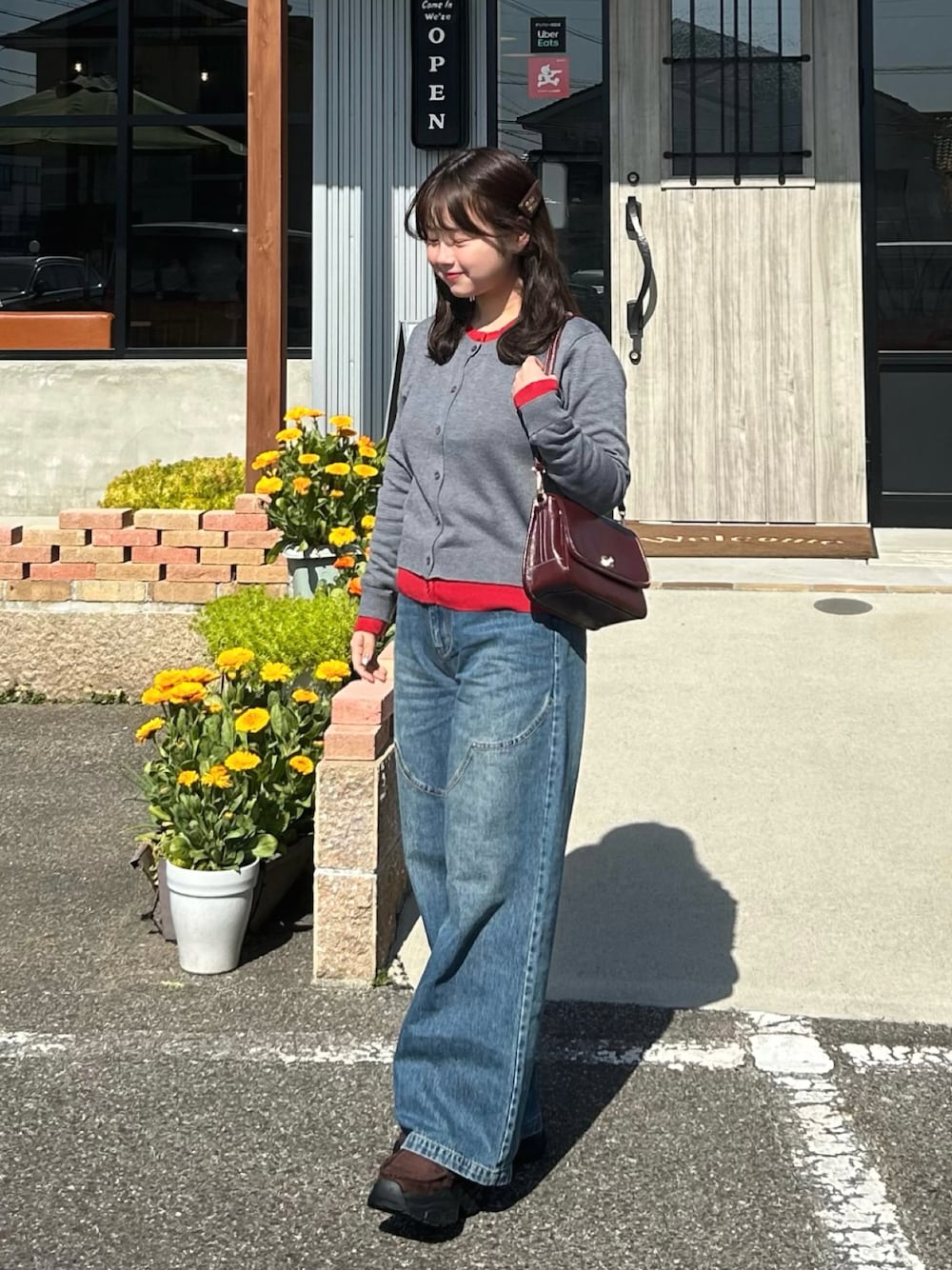 1枚で決まるレイヤード風カーディガン⸝⋆ 赤が差し色になって可愛い!♡ ぴったりすぎないシルエットも好き🙂↕️💭 🏷️Instagram:@pyon_chan___