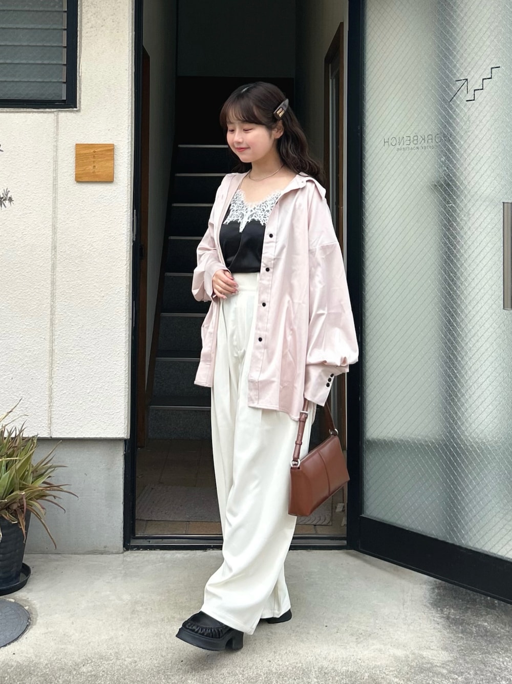 お花見にもぴったりなピンクのサテンシャツ🩰 🏷️Instagram:@pyon_chan___