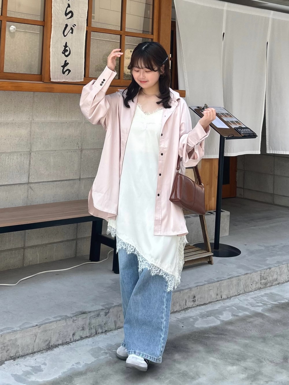 サテンキャミワンピ×サテンシャツ🌸 デニムでカジュアルダウンしたきれいめコーデ⸝⋆ 🏷️Instagram:@pyon_chan___