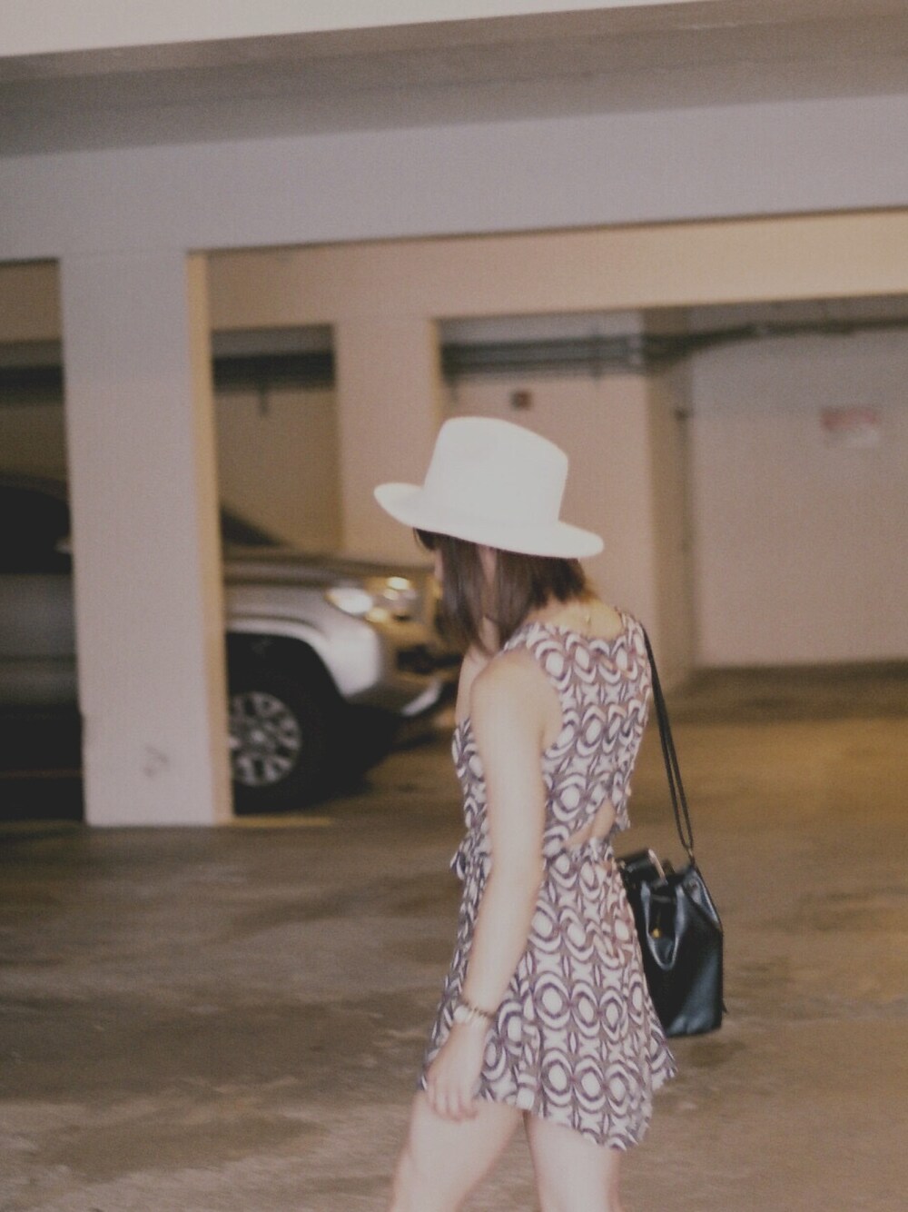 グアムでのcode① エスニックな柄のワンピに 白のハットとサンダルを合わせました。