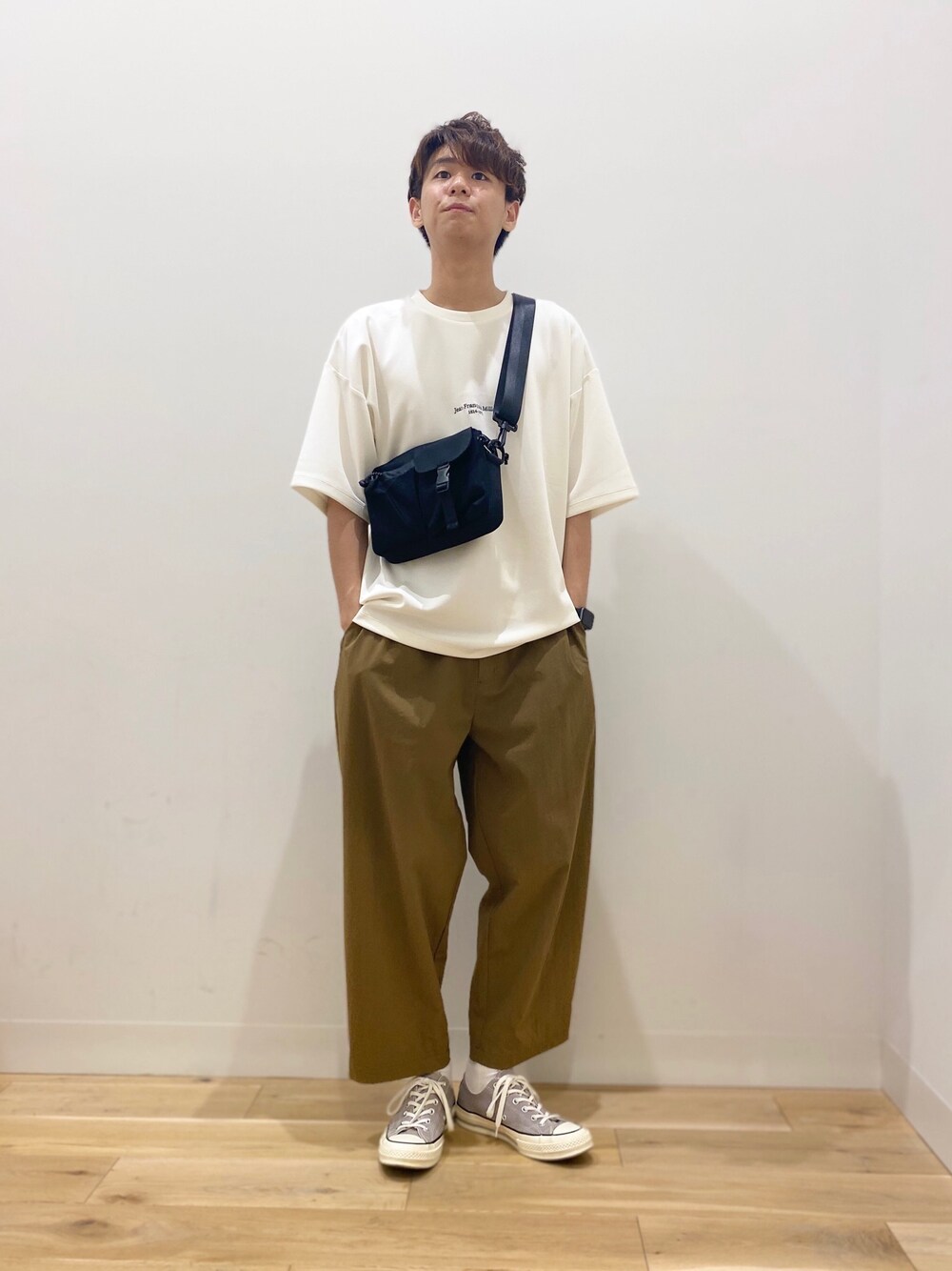 パンツはシルエットも良く撥水加工で梅雨のこの時期にぴったりです。 ベージュトーンでゆるっと可愛らしいコーデに◎ ぜひチェックしてみてください!