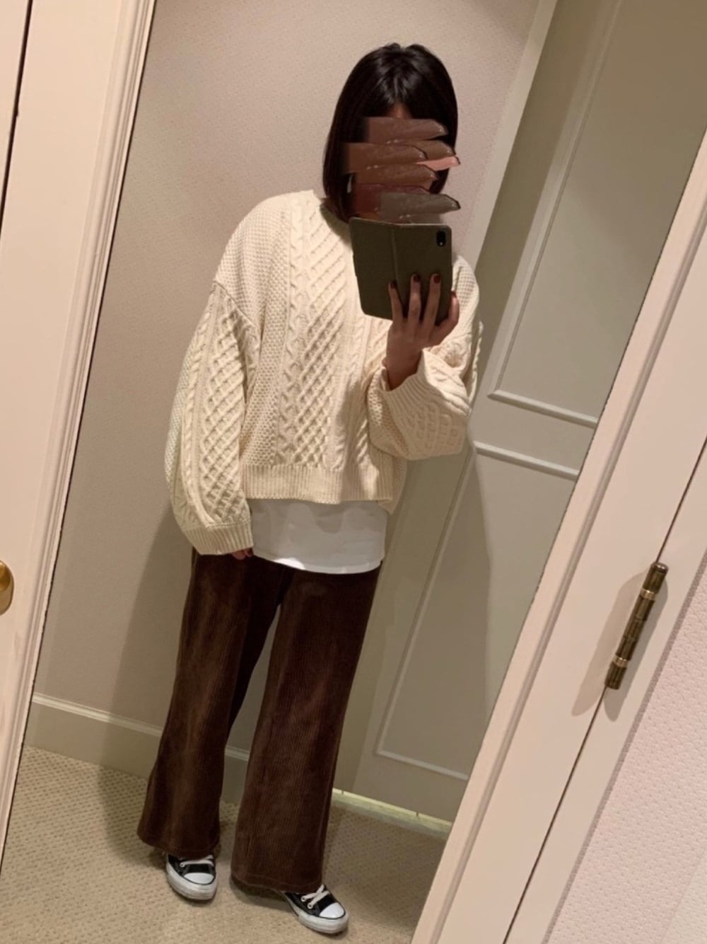 UNIQLOのパンツはコーデュロイワイドストレートパンツです。 見ていただきありがとうございます🌼