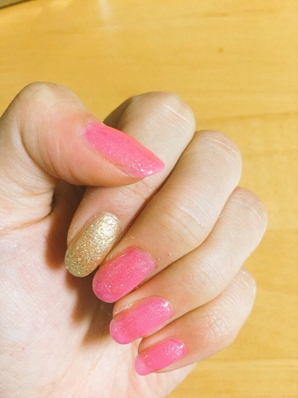 セルフネイル♡ ピンク+ラメ ゴールド