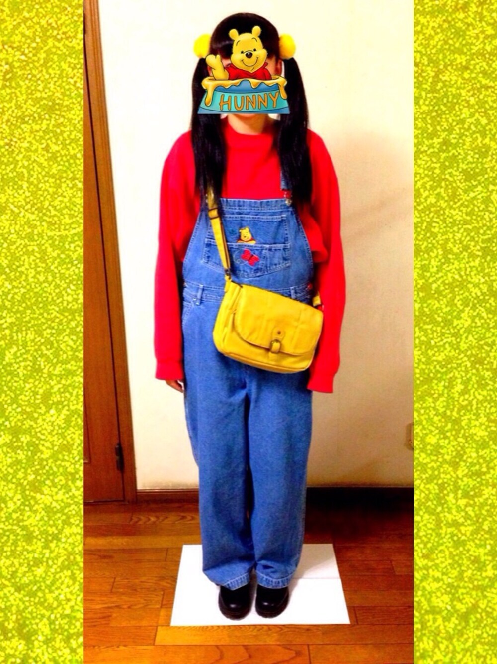 プーさんコーデ🐻🍯🐝… 🌟トレーナー →WEGO古着 🌟オーバーオール →WEGO古着 🌟靴 →H&M 🌟ポーチ →??? 🌟髪ゴム →patty's