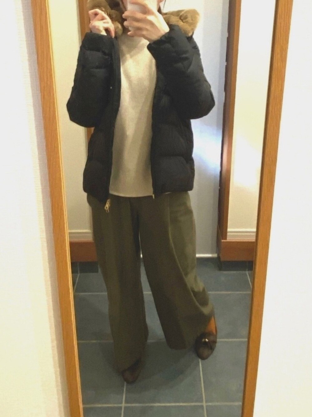 アローズで購入したDUVETICAのROISINダウンジャケット✨ ショート丈で、ワイドパンツにも合わせやすいです☺️ ファスナーを全部閉めるとついているファーがマフラー代わりになって気持ちいい💕 寒い日が楽しみになりました✨ 今モカ色がsaleになっているようです。 モカ色もほしい🥺