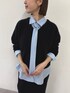 ブルーシャツがポイントの冬ニットスタイル❄︎