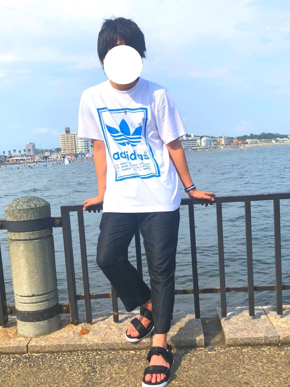 青✖️白✖️黒 のシンプルコーデ!アディダスのTシャツは安定でカッコいいですね👌