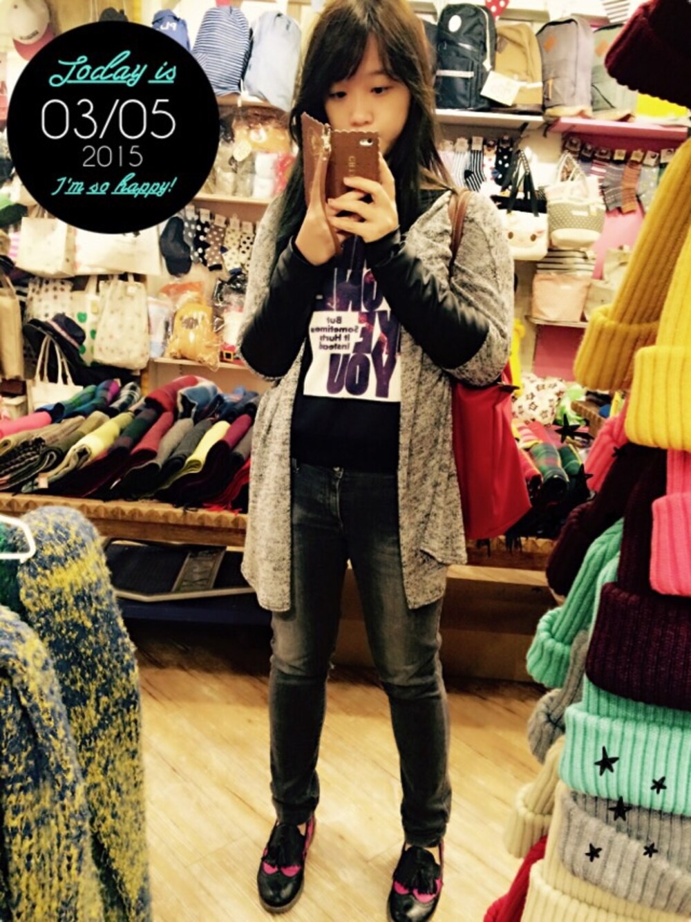 今天天氣比較沒那麼冷,就不想穿得太過厚重了呢 穿上刷毛大學T與灰色丹寧褲上課去! 大學T對於我這種手臂肉肉的人來說, 最煩的就是肩膀看起來很寬...... 所以穿上H&M的針織罩衫來修飾! 這件針織衫對不敢穿針織的我來說真是聖品! 因為前臂的黑色皮料, 讓整體修飾效果滿分 另外特別要提到的就是画兒小姐的樂福鞋! 超潮的螢光粉紅色應該是絕無僅有吧! 穿起來也超舒服,是我配牛仔褲的定番 罩衫:H&M 上衣:購入自turtle223 丹寧褲:BRAPPER 鞋:画兒小姐