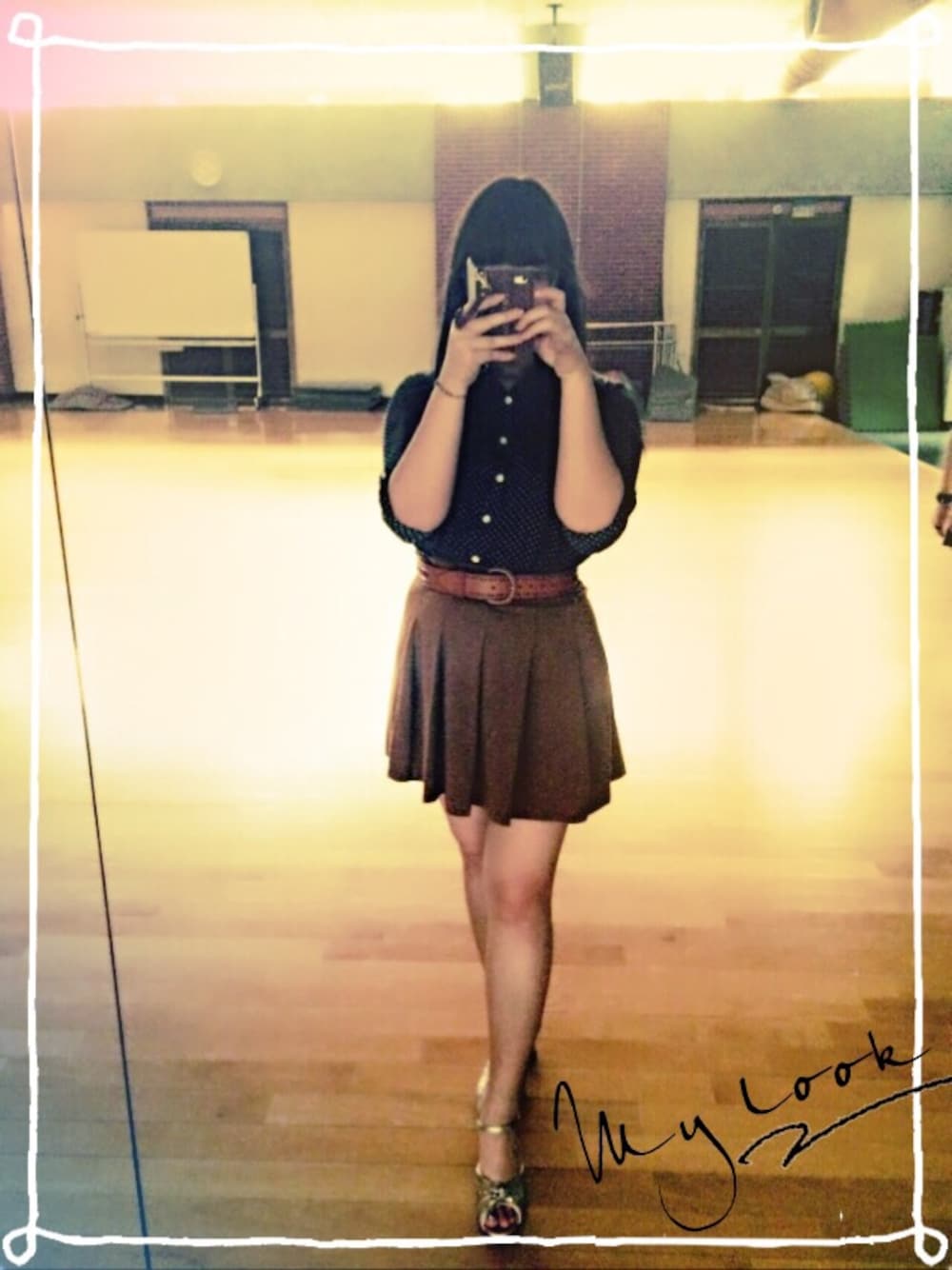 從上禮拜的超冷到這禮拜的超熱,台北三溫暖名不虛傳:'-( 今天上了期待已久的國標課! 跳的是捷舞,雖然是超級放慢版XD 但是穿短裙轉圈圈才有感覺呀! 就連體育課,都要選可以穿得漂漂亮亮的課程 ❤️ 而且舞鞋是金色鑲鑽, 真的超級浪漫的! 上衣:StarKiki 裙子:人魚羨 鞋:舞鞋專門店