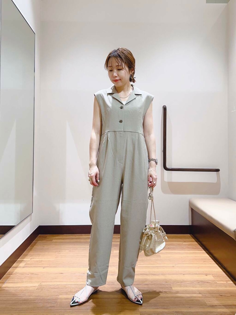 fujimon(warehouse THE OUTLETS HIROSHIMA)のショルダーバッグ「メタリックドロストショルダーバッグ」を使ったコーディネート