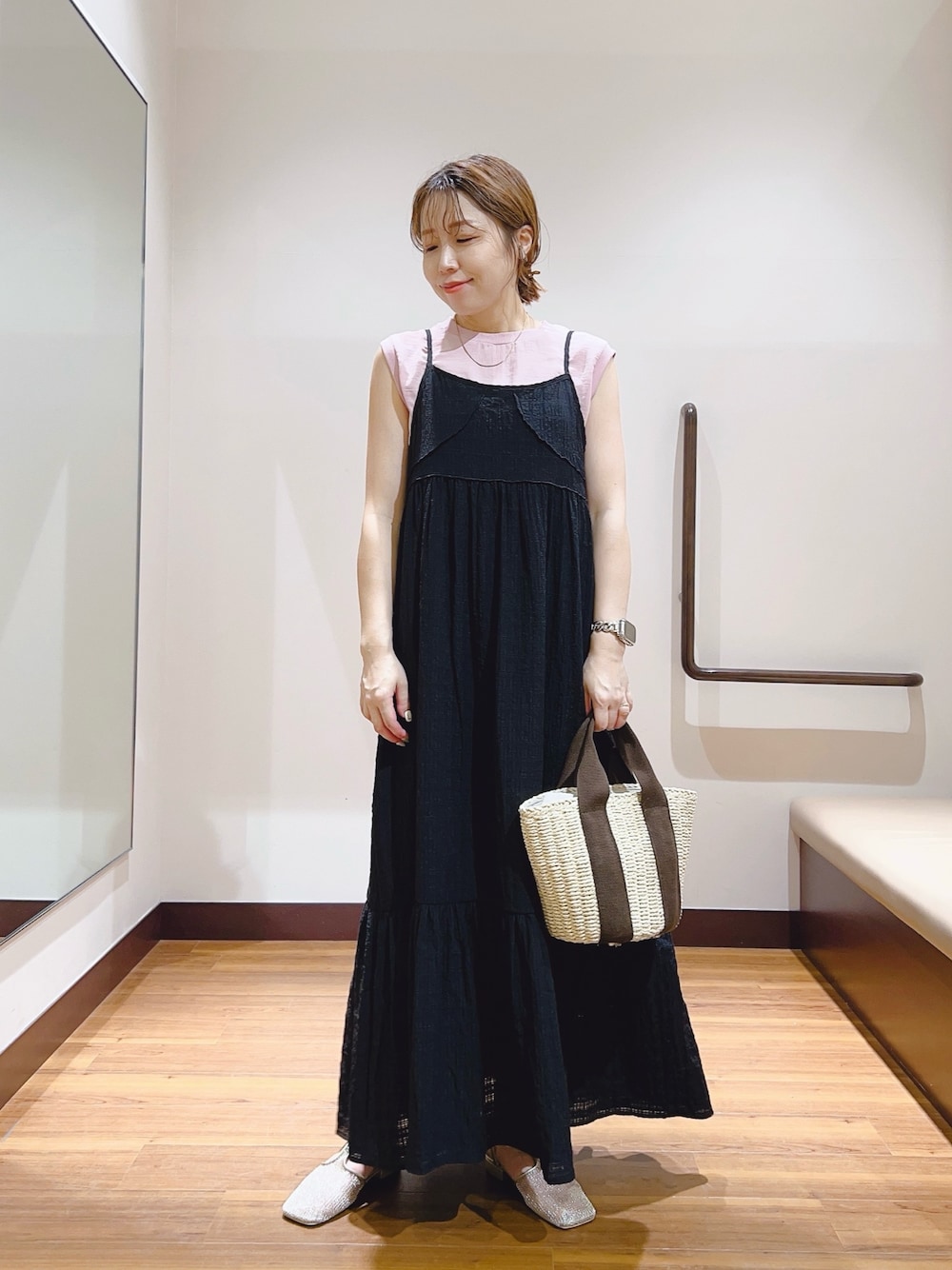 fujimon(warehouse THE OUTLETS HIROSHIMA)のワンピース「チェックジャガードキャミワンピース」を使ったコーディネート
