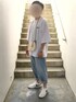 今日は少し職場に顔出すので、シンプルコーデ! デニムとスニーカーで暑苦しそうな印象を、色味とロールアップで涼しげな印象に!