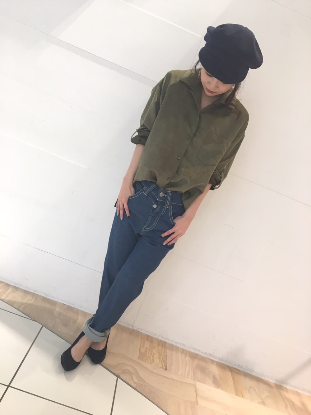 素材感が可愛いビッグシャツを ウエストでインしてゆるくきました(*^^*) プラスしたキャスケットもお気に入りです♡