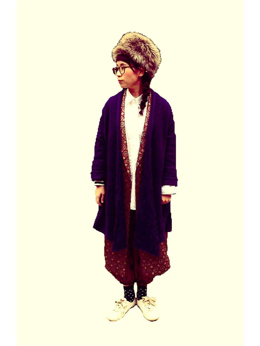 帽子:古着 ネイビーのガウン:L.B.C 柄ガウン:古着 シャツ:古着 パンツ:KAPITAL
