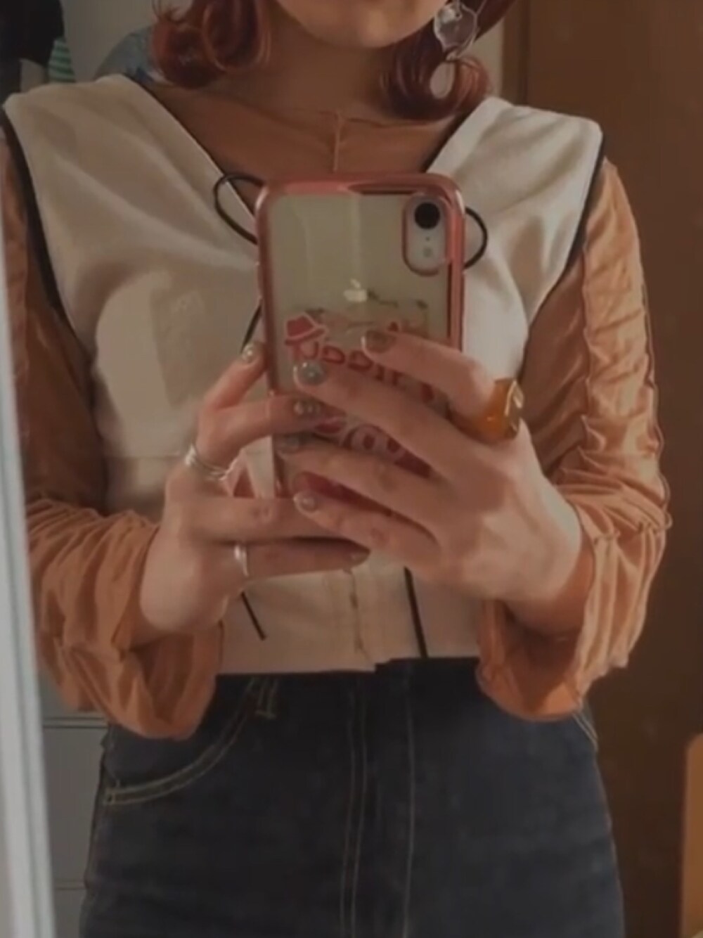 リサのベスト「パイピングレースアップベスト」を使ったコーディネート