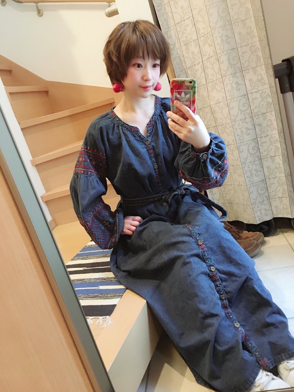 お久しぶりになってしまいました。 昨日は天気が良いので家族で動物園に行ってきました。 娘はまだあんまり良くわかってなかったけど、ペンギンを見ては手を叩いて喜んでました。 家帰ってきて何か肩がヒリヒリするなぁと思ってお風呂の時に鏡で見てみたら赤くなっておもいっきり日焼けしてました。 肩がスーパーだせぇ感じになってしまいました。 3月だからって油断したぜ(白目) コーデは一目惚れした刺繍デニムワンピ。 デニムと赤の組み合わせが好きー! 友人が作った赤い羊毛フェルトピアスを合わせました。 春服みんな可愛くてワクワクするけど、花粉に心折れそうです。