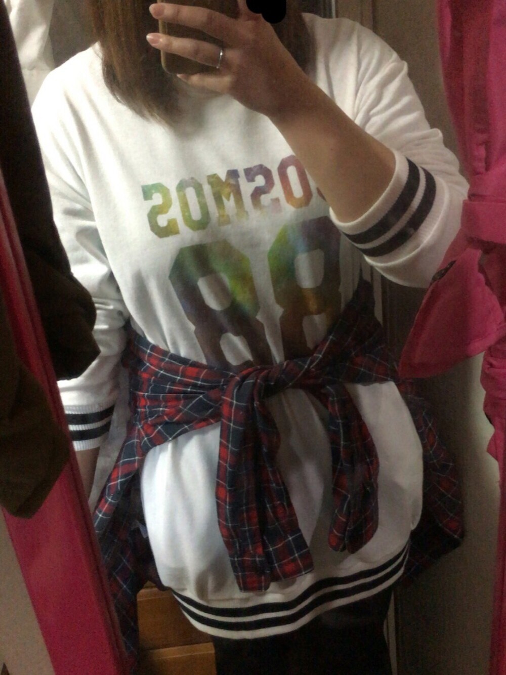 薄手のトレーナーになってるから 今の時期だとヒートテックの上に着たらちょうどいいかな ちょっとあったかくなってきたらタンクトップでもいーかも。 下はジーパンでもいーしタイツとかでもおかしくない!