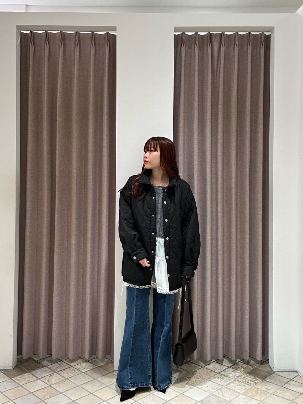 たけなか(mystic)のその他アウター「【軽いのに暖かい◎/2サイズ展開】襟付きキルティングジャケット」を使ったコーディネート