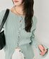 【着用サイズ】 パンツ 1 細見えが叶うカーディガンは ラウンドスリットが今年らしいアイテムです! ナチュラルに体のシルエットに沿った形ですが 太めのリブでラインを拾いすぎず、 ウエストや二の腕周りも安心です◎ ミントグリーンの綺麗色は スウェットパンツでカジュアルダウンして 着るのが気分です♡