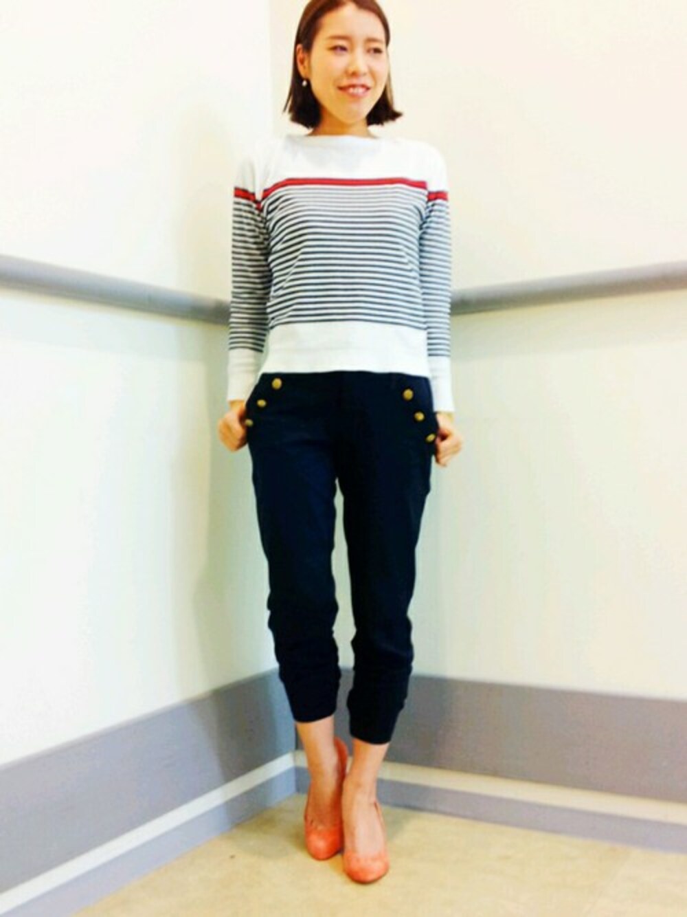 suguroのニット/セーター「スレットボーダーニット」を使ったコーディネート