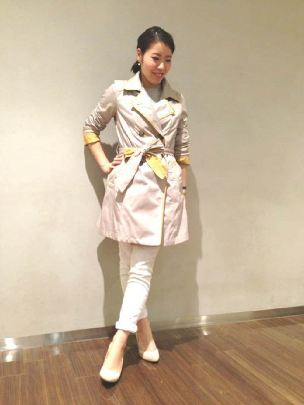 カリテ定番のトレンチコートです。 イエローの配色が、他にはない可愛さですよね! パンツ・スカートなんでも合わせやすい絶妙な丈感がお気に入りです☆ 取り外し可能なライナーは、サーモライトを使用しているので、着心地はとても軽く、しっかり暖かいですよ。
