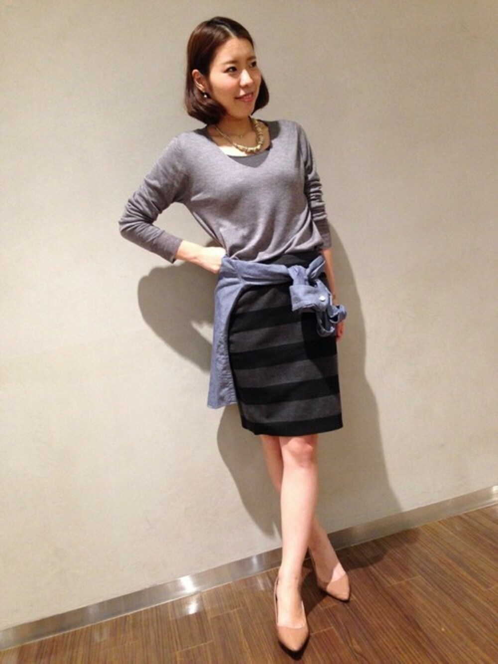 さらっと着心地のいいニットです! 丈はしっかりありますが、細身なのでインしてもスッキリ着ていただけますよ。 シンプルなので、アクセサリーが映えますね☆ ON・OFF着回しがしやすいシンプルニットは、この春1枚は持っておきたいですね。