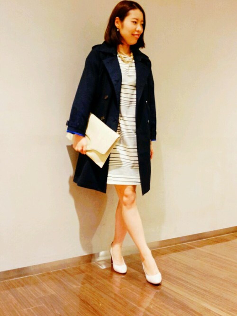 ハリ感のある正統派トレンチコートです! ボンディング加工、ライナー付きなので、しっかり暖かですよ☆ 袖を折り返すと見えるブルーの裏地が、さすがカリテのこだわりですよね。 ネイビーならかっこよさもありつつ、女性らしい柔らかさが出せるので、オススメです☆