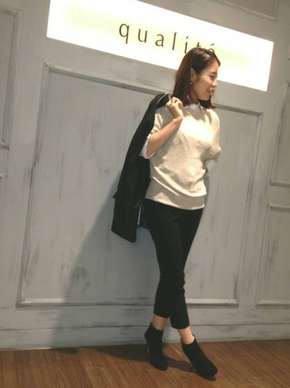 suguro(カリテ スケープ ららぽーと豊洲店)のニット/セーター「畦切替ドレープニット」を使ったコーディネート