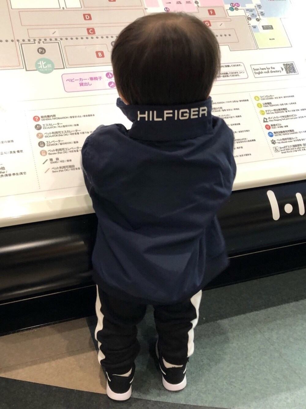 トミーのマウンテンパーカー可愛い☺︎ 文字のところにフードが隠れてて、 使わない時はしまえるから嬉しい☺️