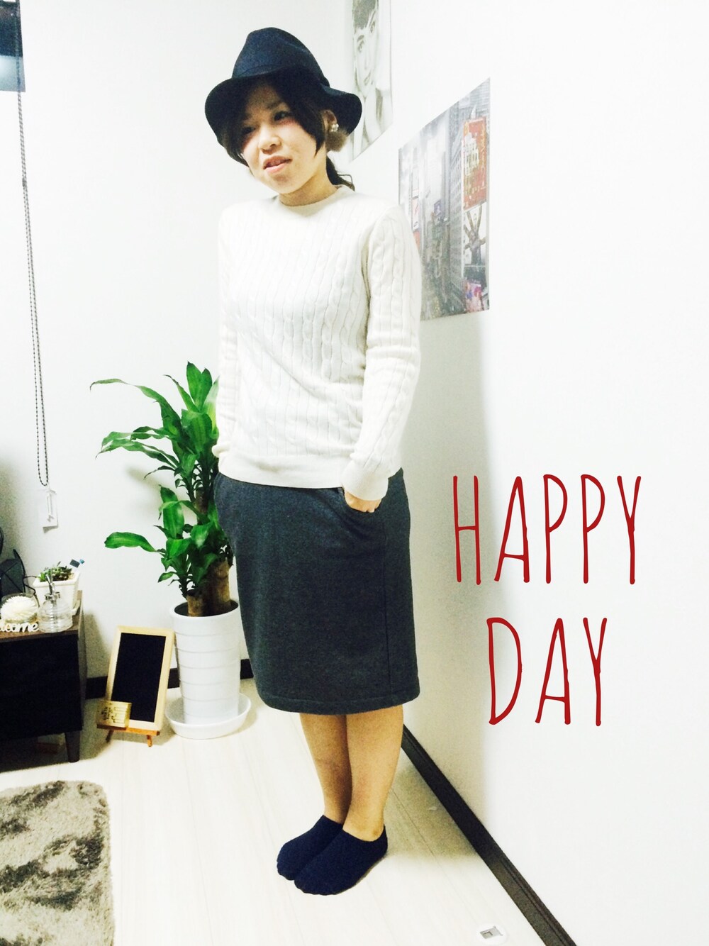 ハット:UNIQLO ニット:UNIQLO ボトム:UNIQLO 全身UNIQLOコーデ