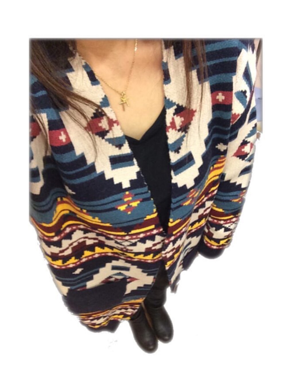 オルテガ柄ロングニットカーデ♡