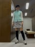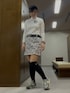 qurocheのスカート「モノグラムプリントダンボールニットタイトスカート」を使ったコーディネート