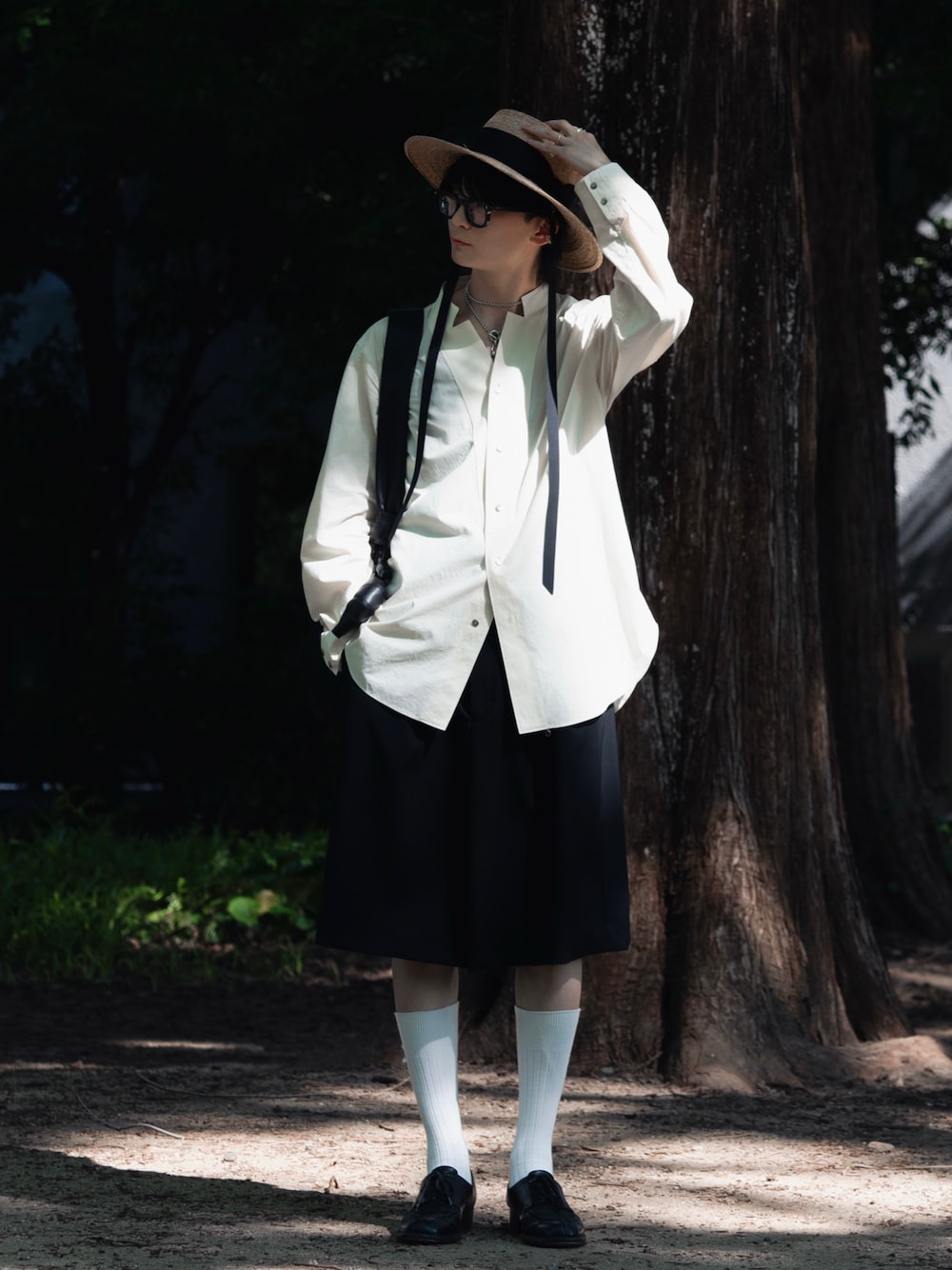 きゅうのその他パンツ「TWO TUCK WOOL WIDE SHORT TROUSERS」を使ったコーディネート