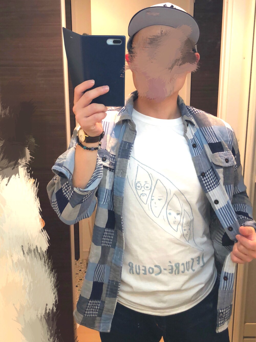 「リアル#パン好きな人と繋がりたい」 お気に入りのパン屋さんのオリジナルTシャツをメインにコーデ。 カトーのダブルガーゼのパッチワークシャツを羽織ってデニムと合わせた。 大阪の人で、パン屋が気になった人は「北新地」「シュクレクール」で検索!